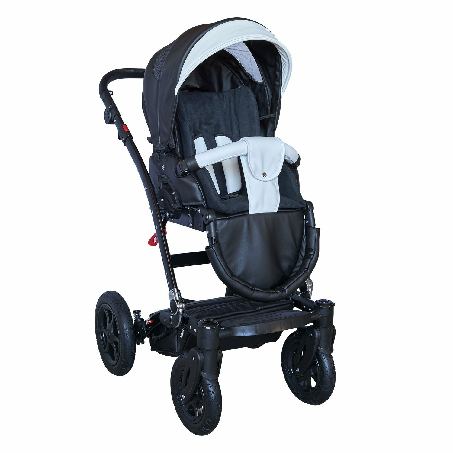 | Плюсы: | Отличное качество материалов, текстиль хороший и экокожа прочная и не маркая. Шасси легкое, устойчивое, и на больших надувных колесах, проходимость классная и неровности дороги амортизирует хорошо, дочку на плохой дороге просто покачивает, ей даже нравится) |