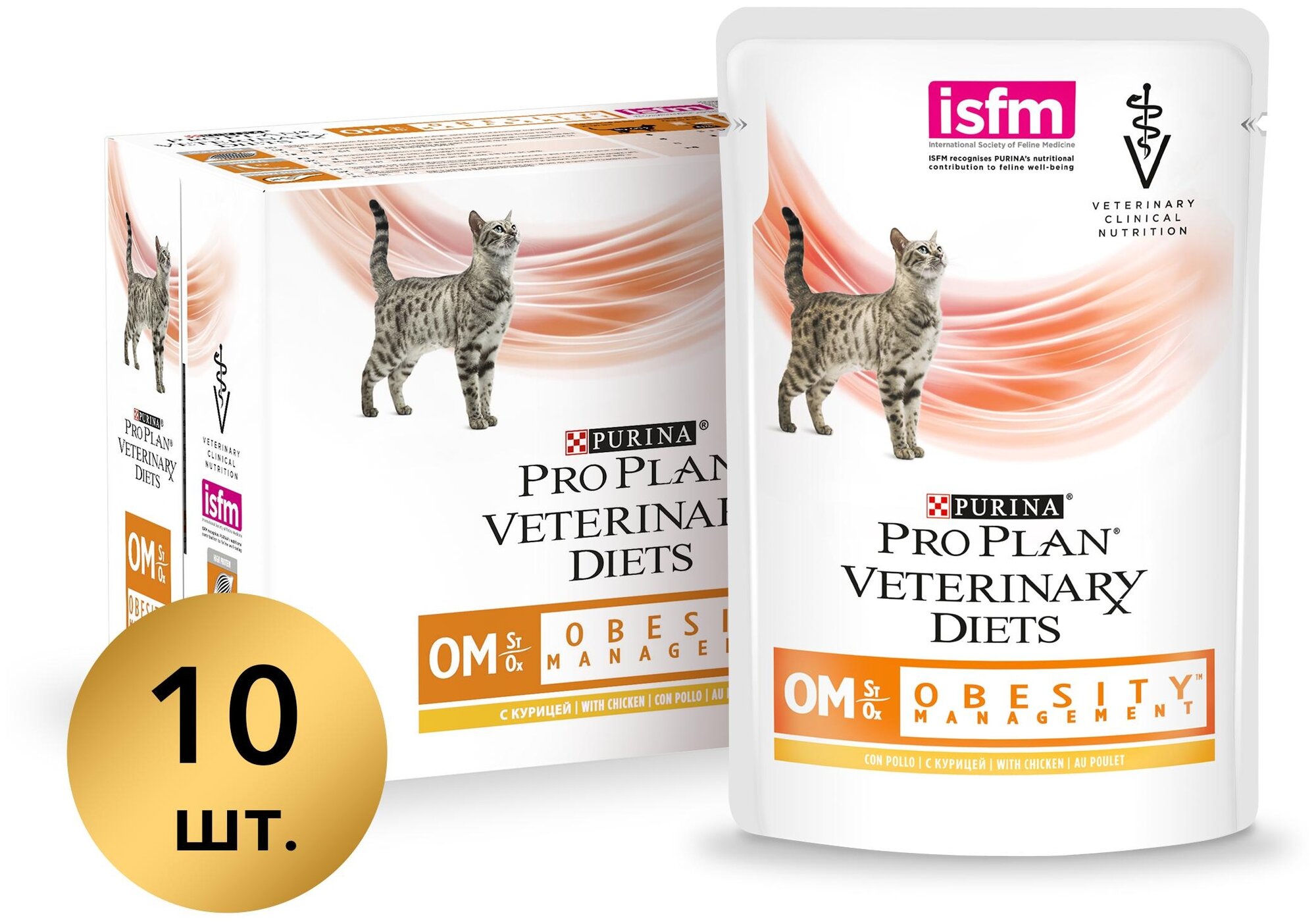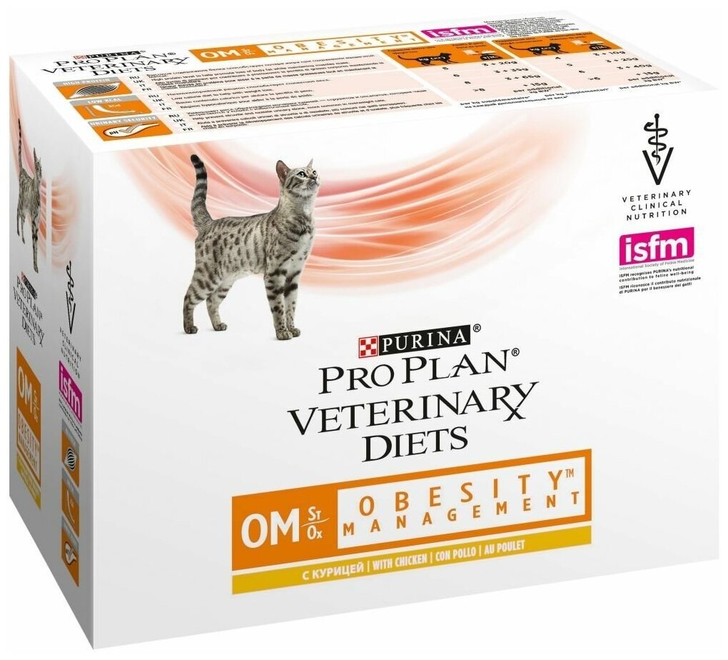 PRO PLAN VETERINARY DIETS OM ST/OX OBESITY для взрослых кошек при ожирении с курицей пауч (85 гр х 10 шт)