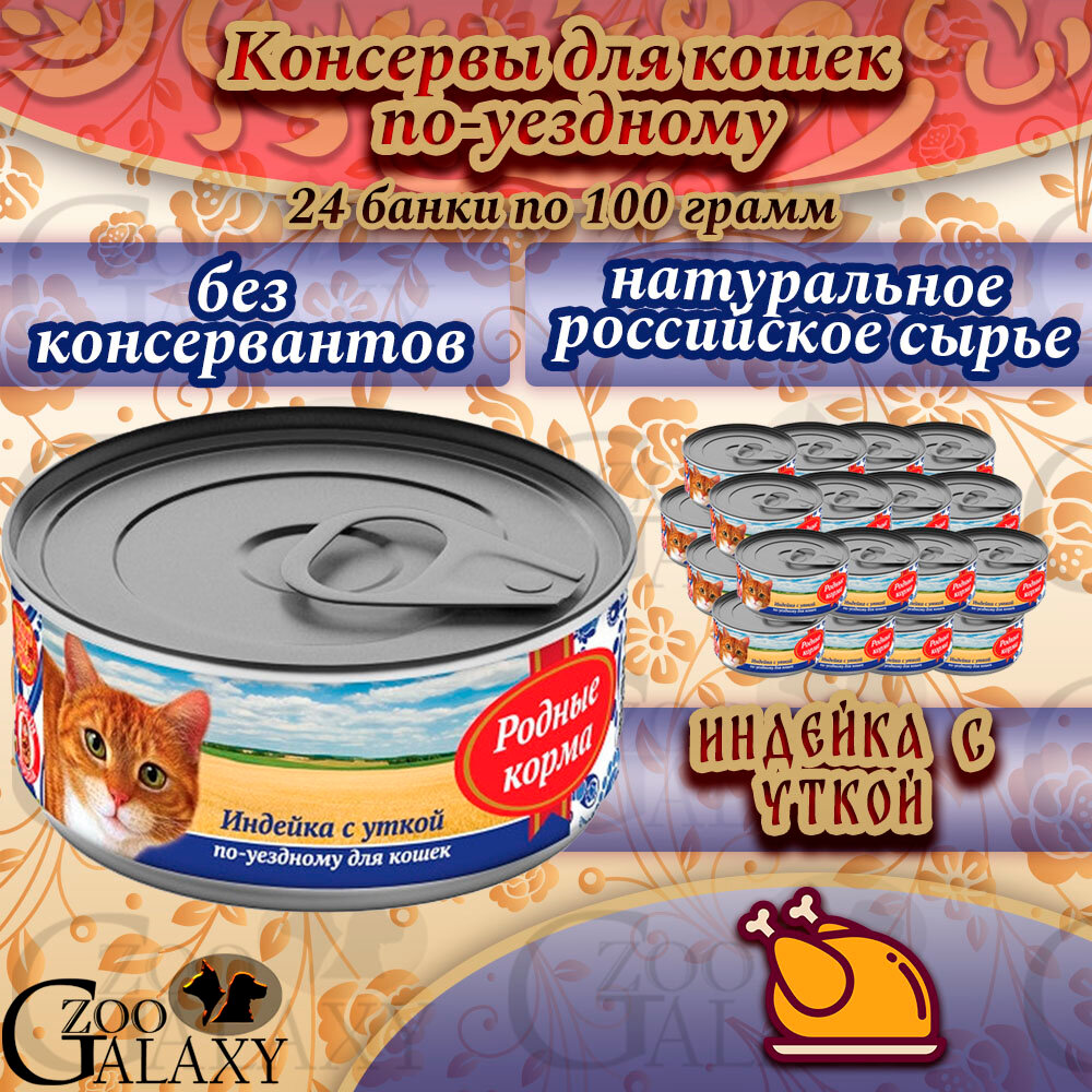 Родные корма Консервы для кошек индейка и утка по-уездному 24х100 г