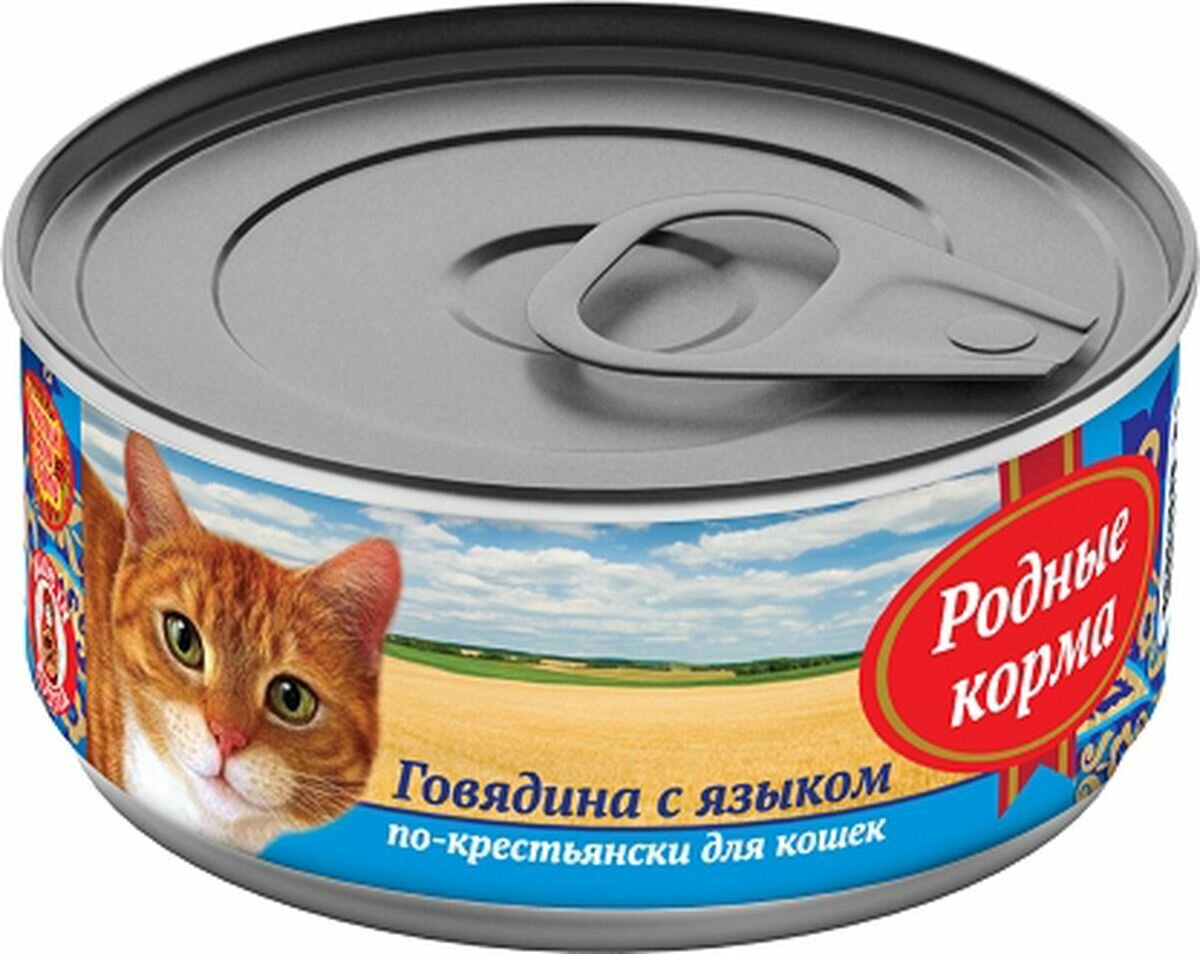 Родные корма Консервированный корм для кошек Говядина с языком по-крестьянски 100 г, 619560 (10 шт)