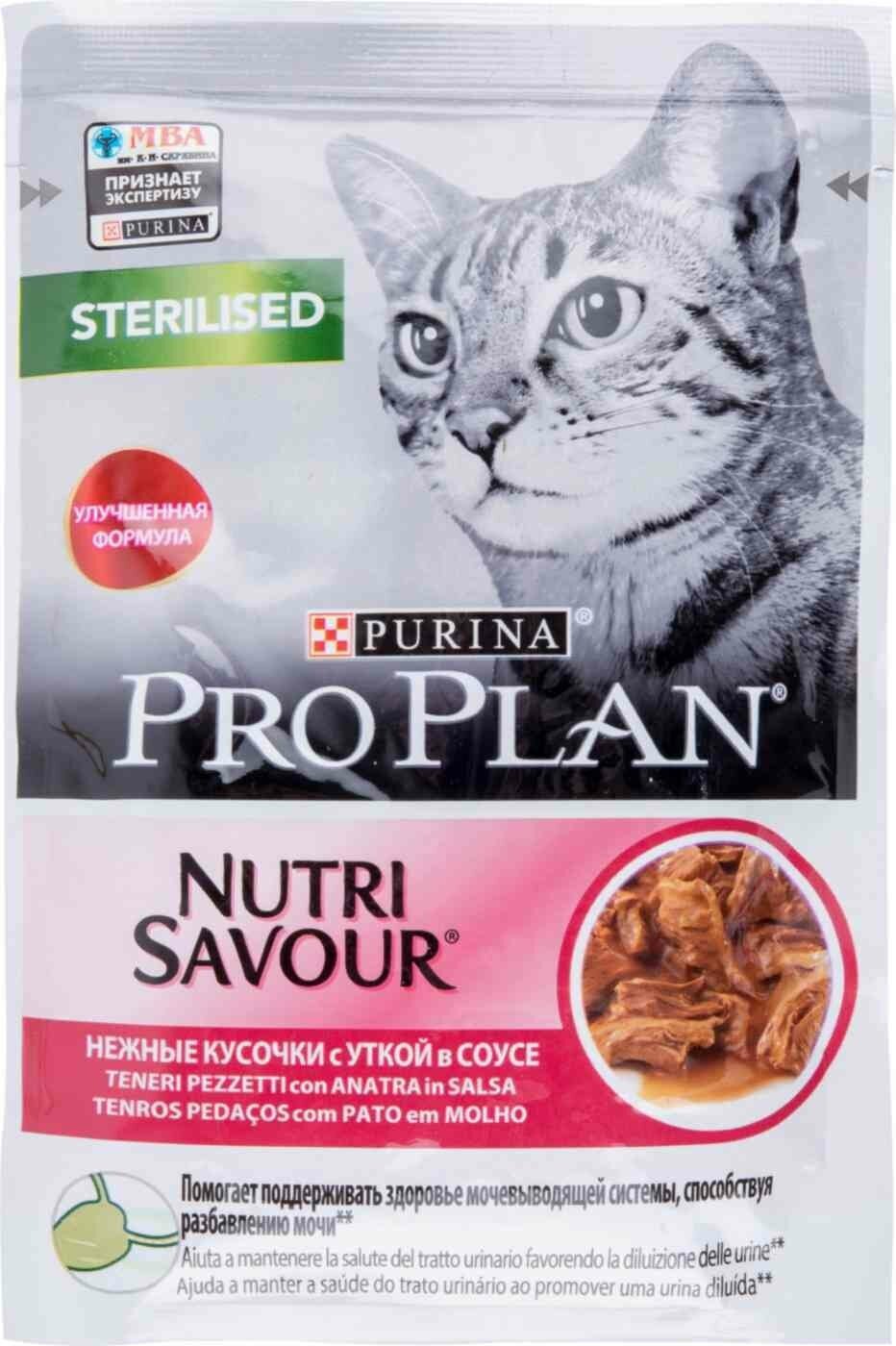 Влажный корм Pro Plan® Nutri Savour® для взрослых стерилизованных кошек и кастрированных котов, с уткой в соусе, 26 шт. по 85 г