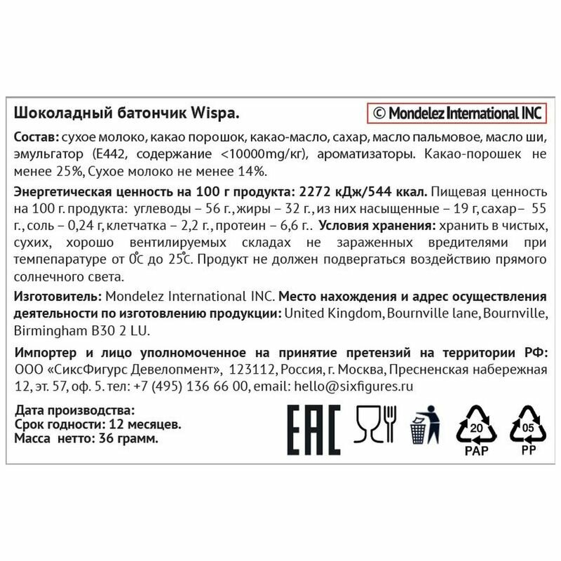 Шоколадный батончик Wispa / Виспа 48шт по 36гр