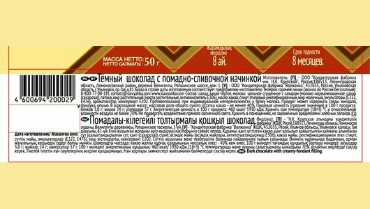 Шоколадный батончик со сливочно-помадной начинкой фабрики им. Крупской 50гр