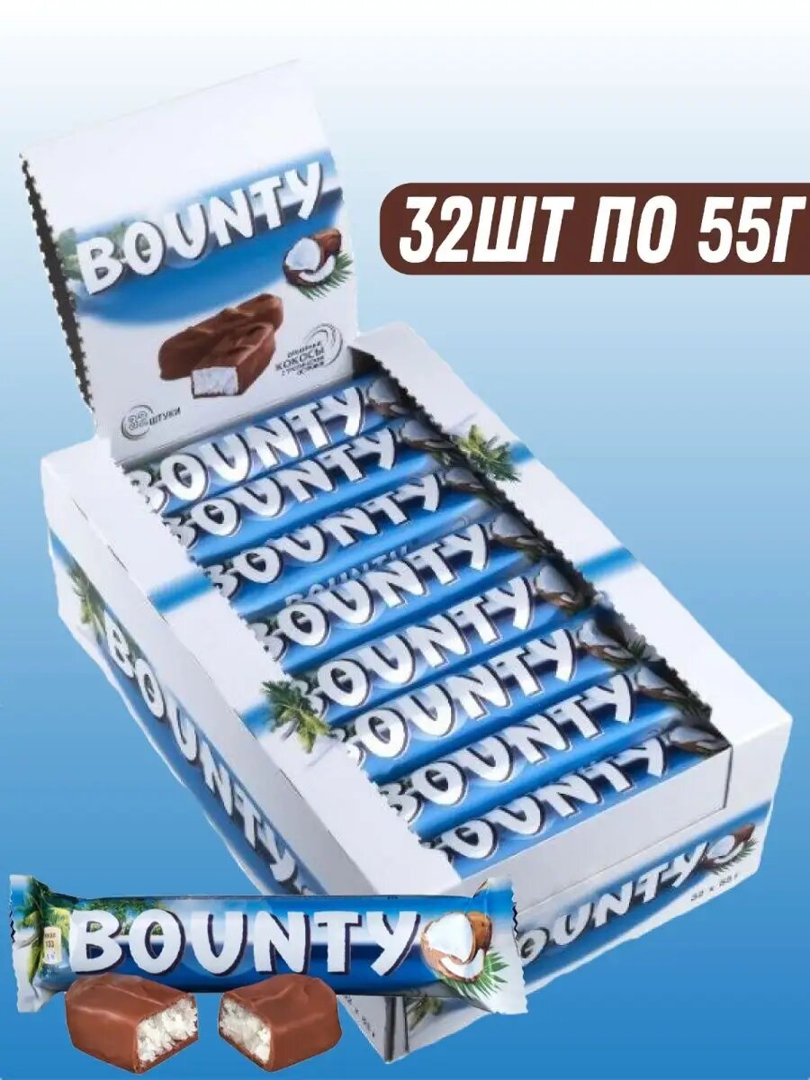 Bounty шоколадный батончик, 32 шт по 55 г интересное: