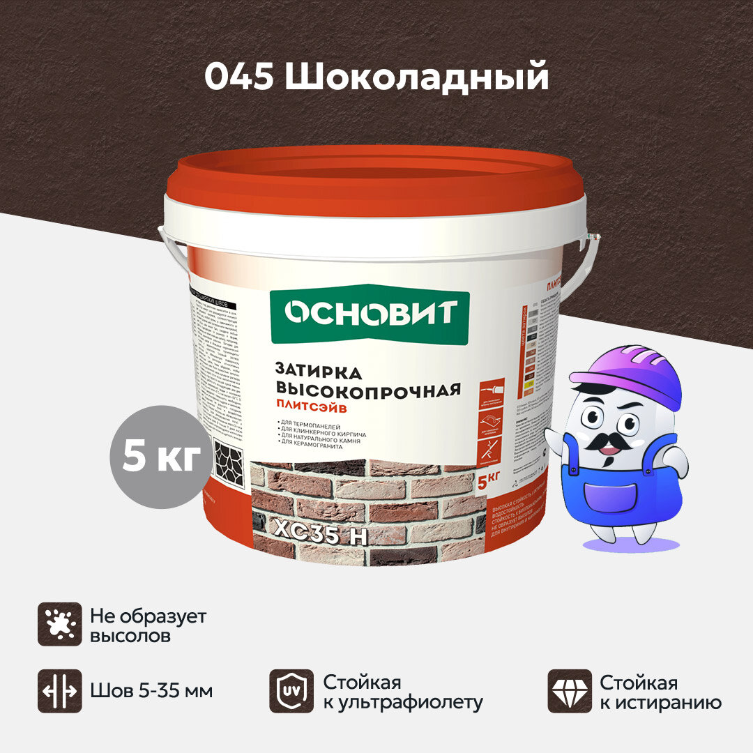 Цементная затирка Основит плитсэйв XC35 H высокопрочная, шоколадный 045, 5 кг 85884