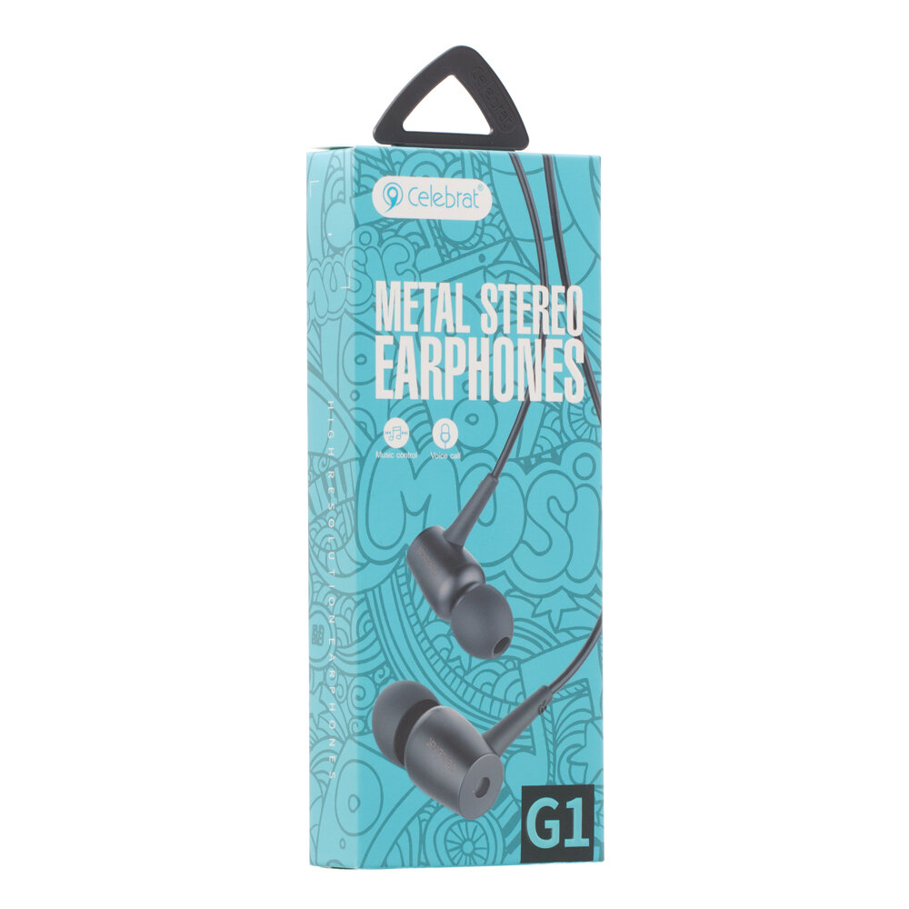Наушники внутриканальные проводные с микрофоном для телефона Celebrat G1 Черные