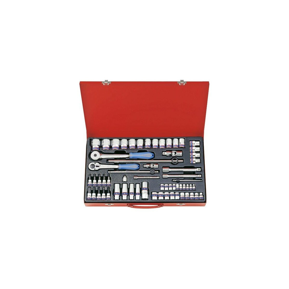 9063MR01 KING TONY Набор торцевых головок с принадлежностями 1/4"&3/8"&1/2", 12-гранные, 4-32 мм, 62 пр, кейс