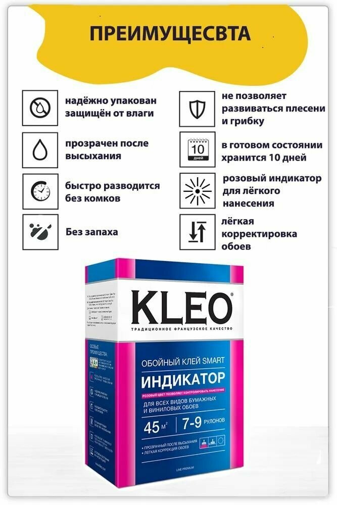 KLEO INDICATOR 7-9, Клей для всех видов бумажных и виниловых обоев, сыпучий с индикатором интересное: