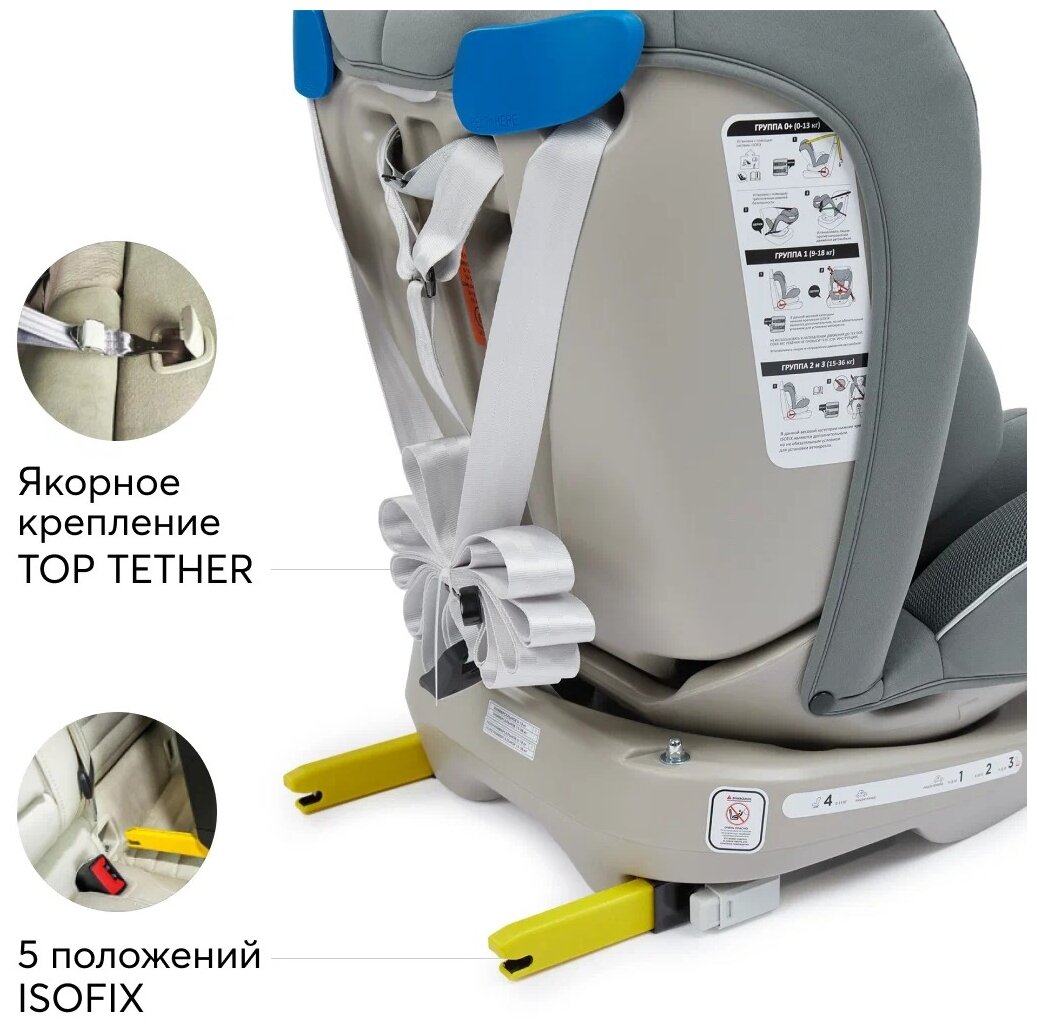 Автокресло детское от 0 до 12 лет Unix Happy Baby группа 0+/1/2/3 (до 36 кг), крепление isofix, поворотная база, темно-серый