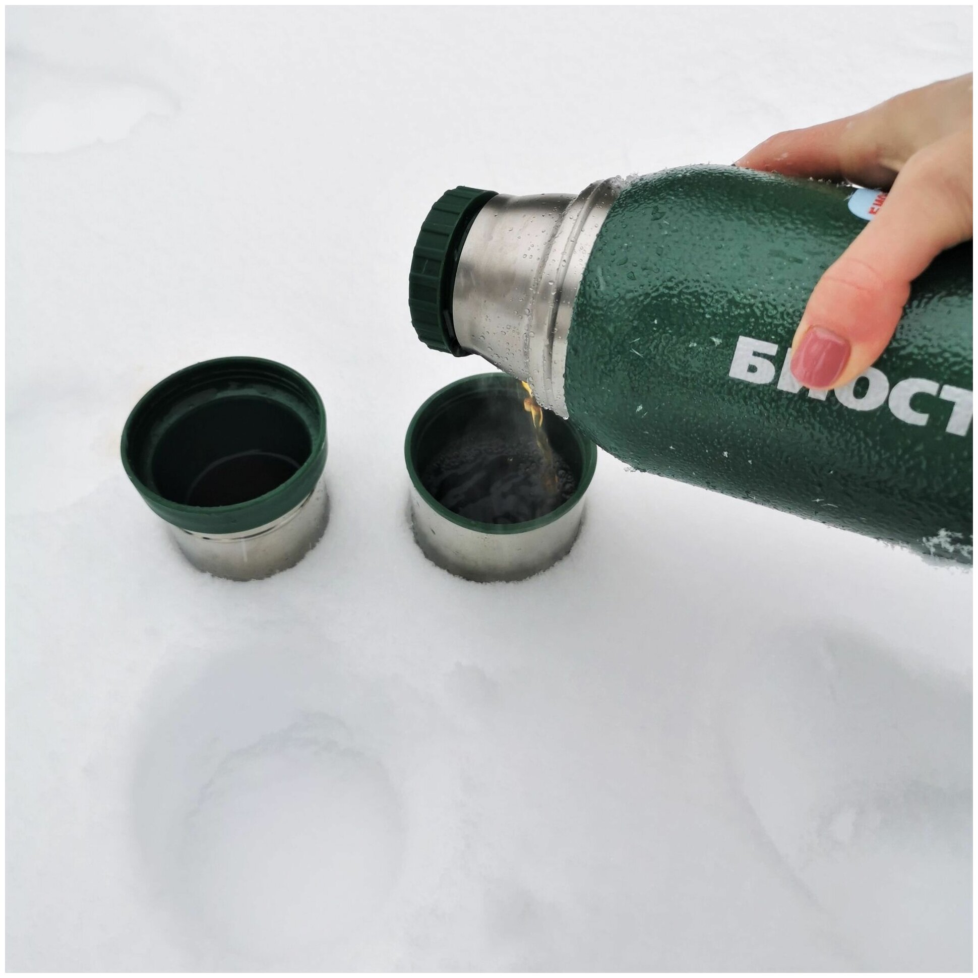 Термос Biostal Охота (0,75 литра), 2 чашки, зеленый