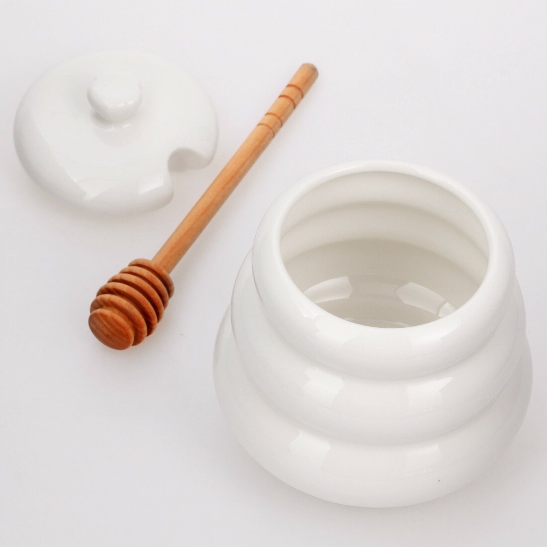 Горшочек для меда 420 мл 10*10*13 см "Бочонок" + дерев. палка
