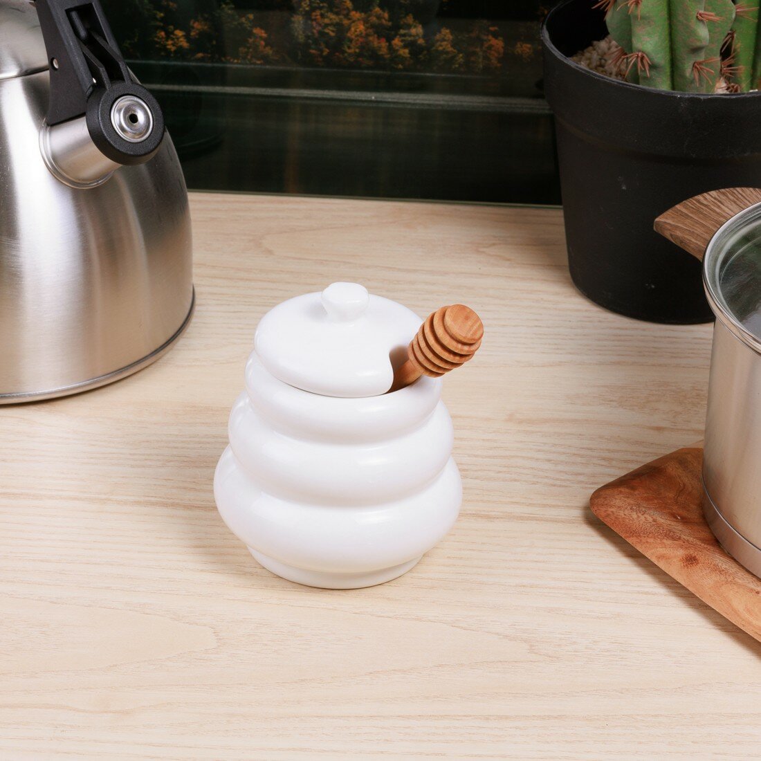 Купить Горшочек для меда / для варенья 420 мл 10*10*13 см Elan Gallery "Бочонок" + дерев. палка