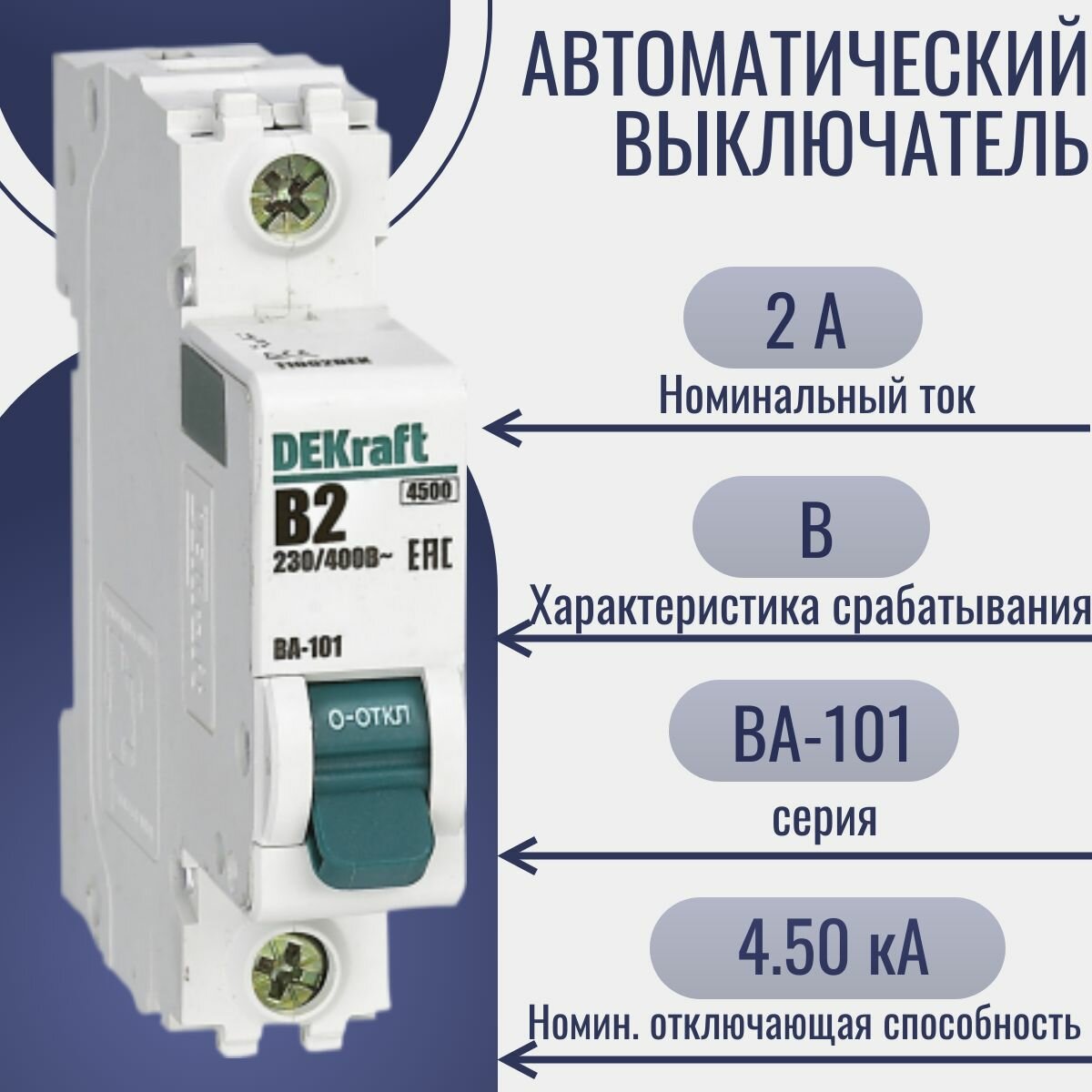 Купить Выключатель автоматический модульный 1п B 2А 4.5кА ВА-101 DEKraft 11002DEK