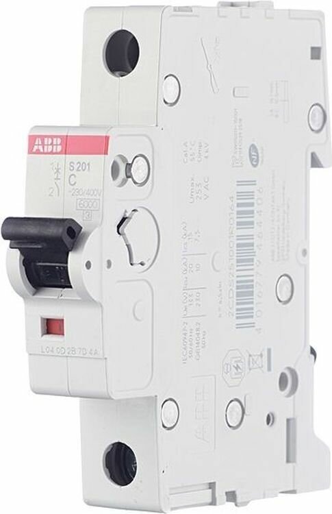 Выключатель автоматический модульный 1п C 20А 6кА S201 C20 ABB 2CDS251001R0204 .