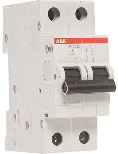 Автоматический выключатель ABB SH202L 2P, 6A, C, 4,5кА