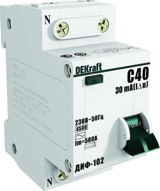 Автомат дифференциальный Dekraft ДИФ-102 (16007DEK) 40А 30 мА 1P+N тип АС 4,5 кА