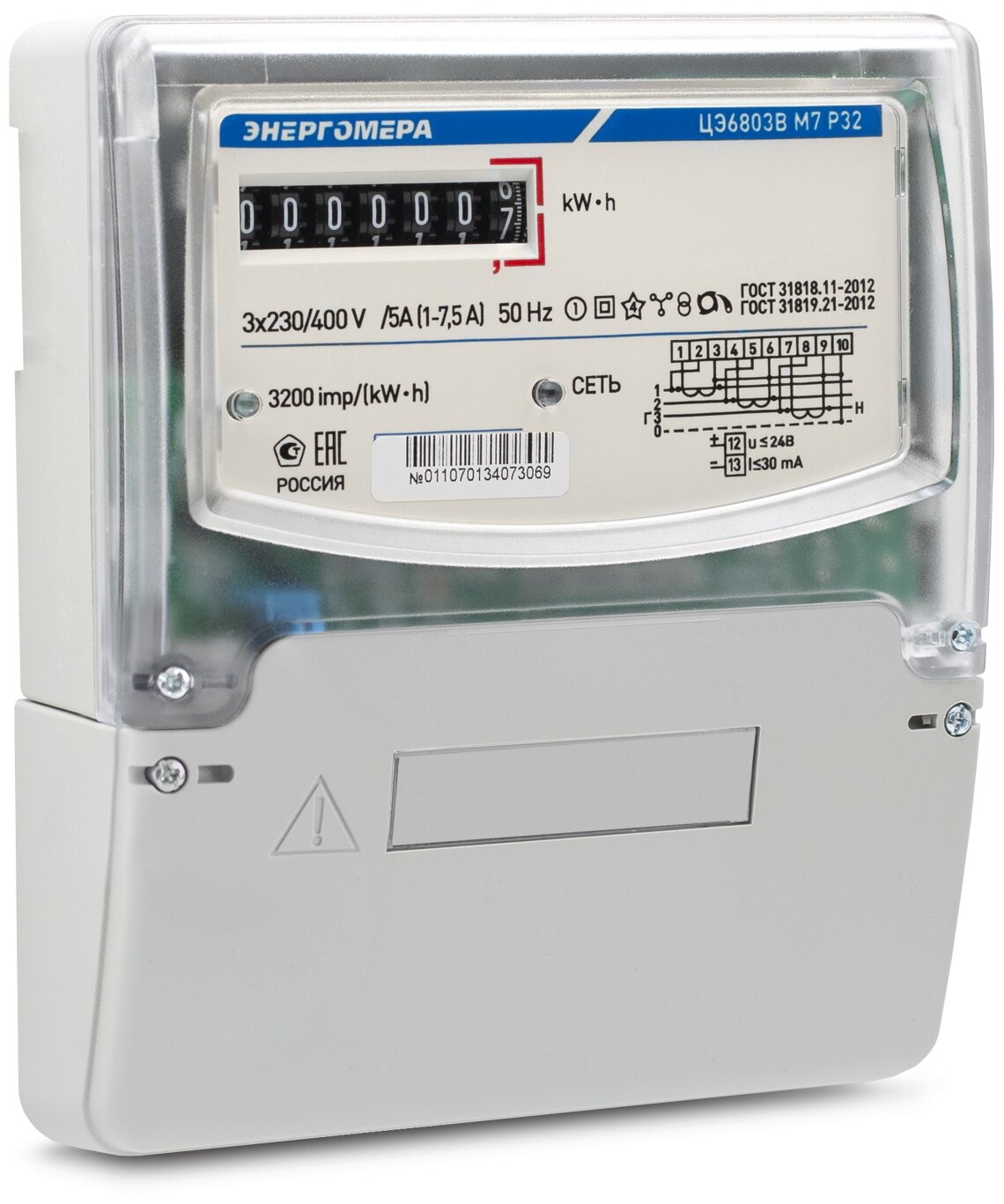 Счетчик электроэнергии трехфазный однотарифный Энергомера ЦЭ6803В 5-60А М7 Р32 5(60) А без привязки к региону