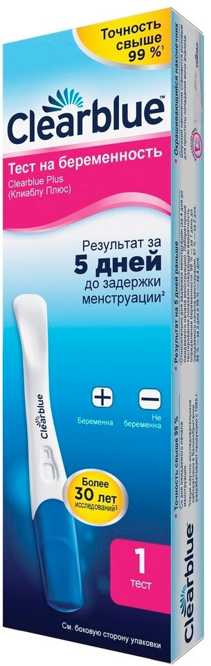 Купить Тест на беременность Clearblue Plus, результат за 5 дней до задержки менструации, 1 тест