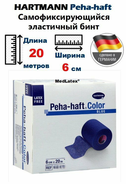 HARTMANN Peha-haft (Пеха-хафт) Самофиксирующийся эластичный бинт, 20м на 6см, цвет: Синий, Германия