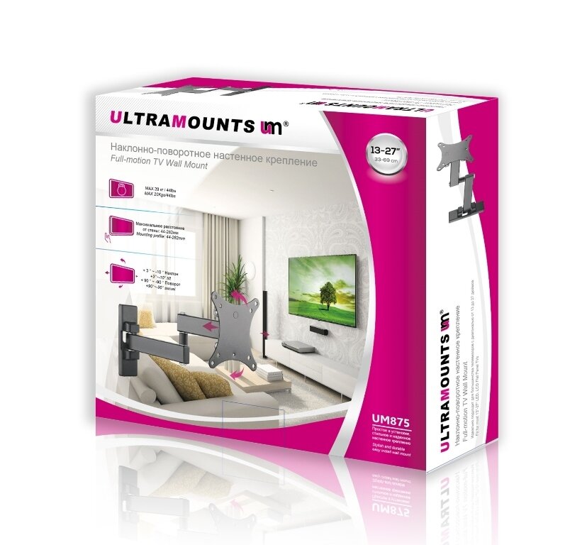 Кронштейн для телевизора ULTRAMOUNTS UM875, 13-27", настенный, поворот и наклон, черный