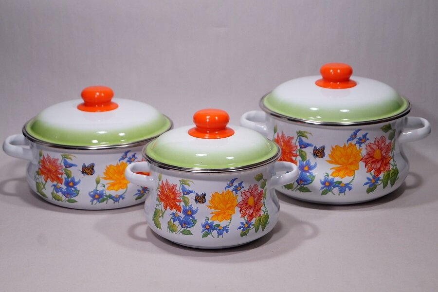 Ниже Вы можете прочитать отзывы на Набор посуды Цветочный кастрюли 2,0/3,0/4,0л, ознакомится с подробными характеристиками, посмотреть интересные обзоры и фотографии на Набор посуды Цветочный кастрюли 2,0/3,0/4,0л.