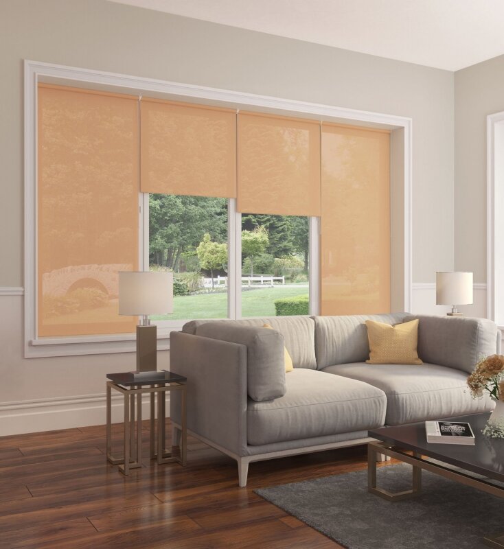 115*160 Универсальная рулонная штора Peora с/з 80%, Однотонный Персик 79325 сет сбоку