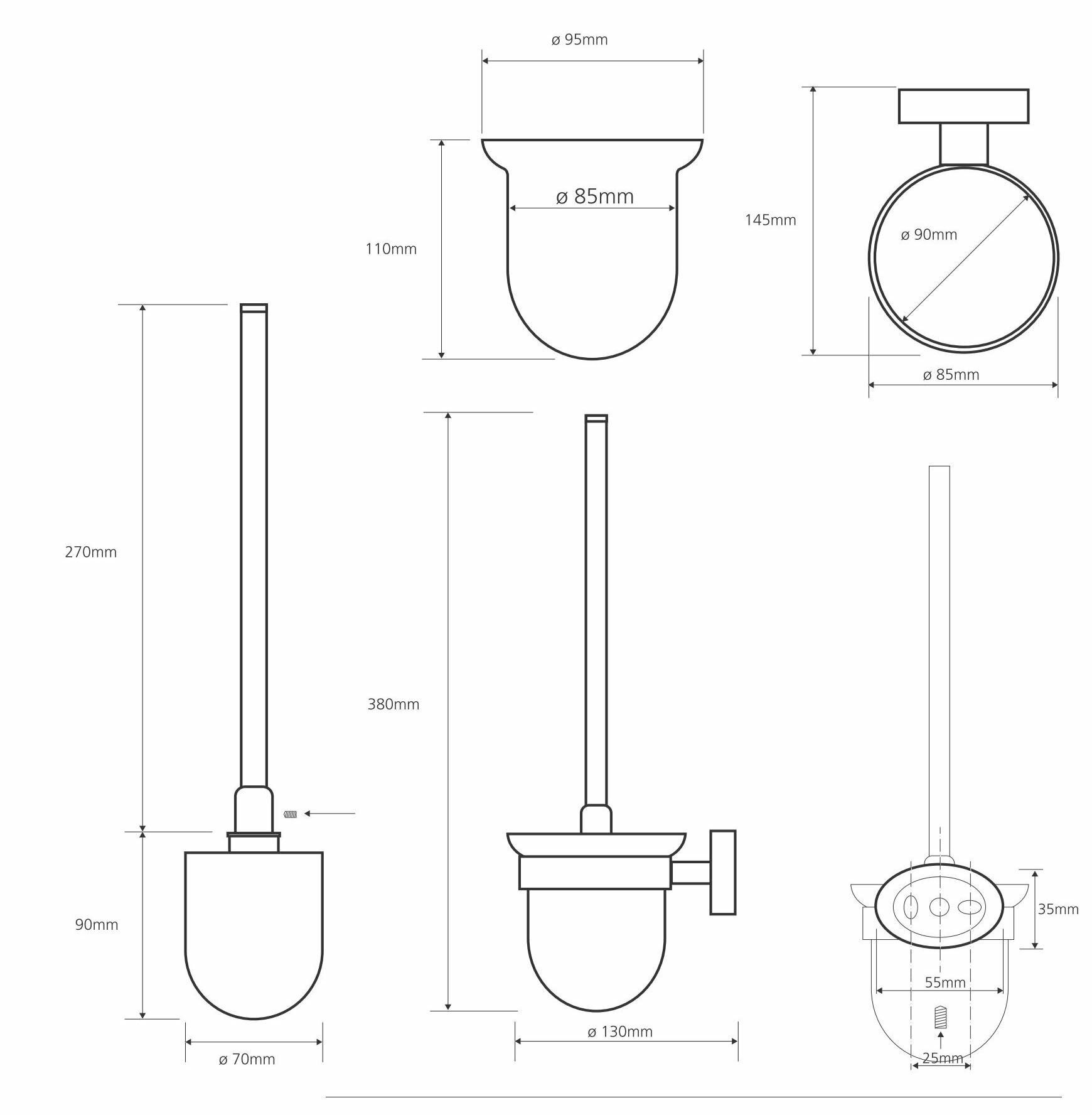 Ёршик для унитаза подвесной Bemeta Oval 118413011 95х360х130мм хром