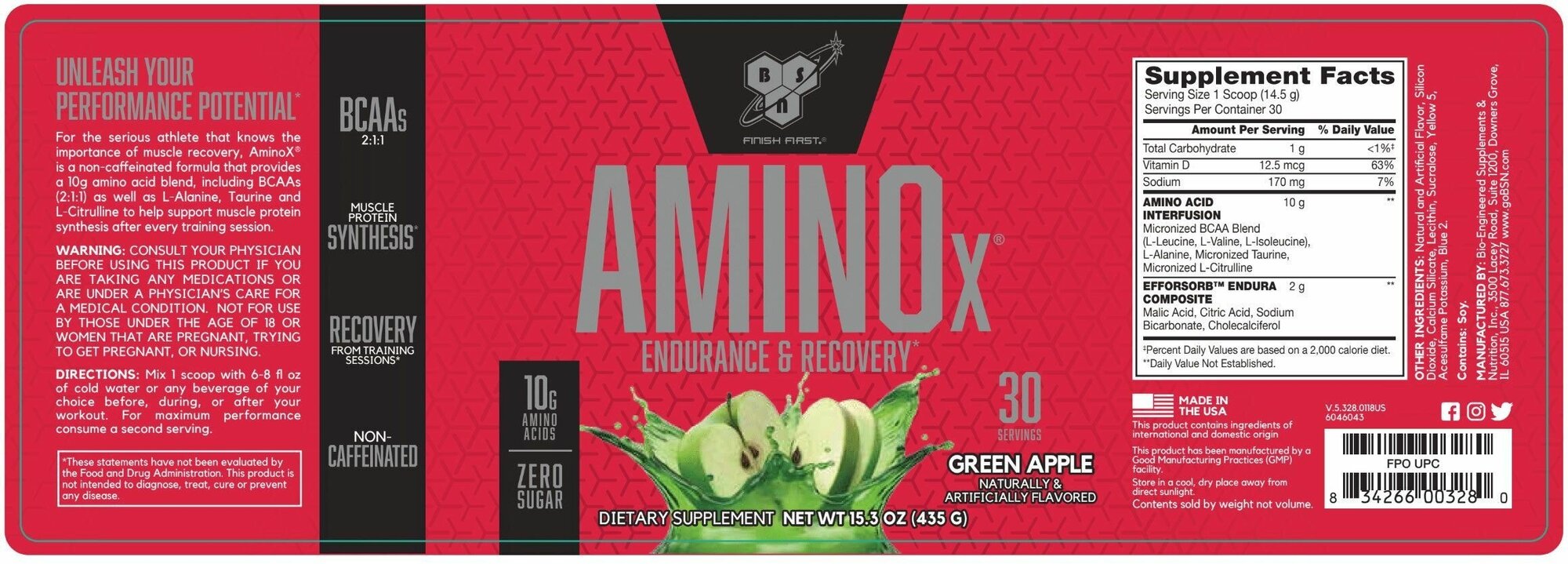 BSN, AminoX, Endurance & Recovery, Fruit Punch, 15.3 oz (435 g)