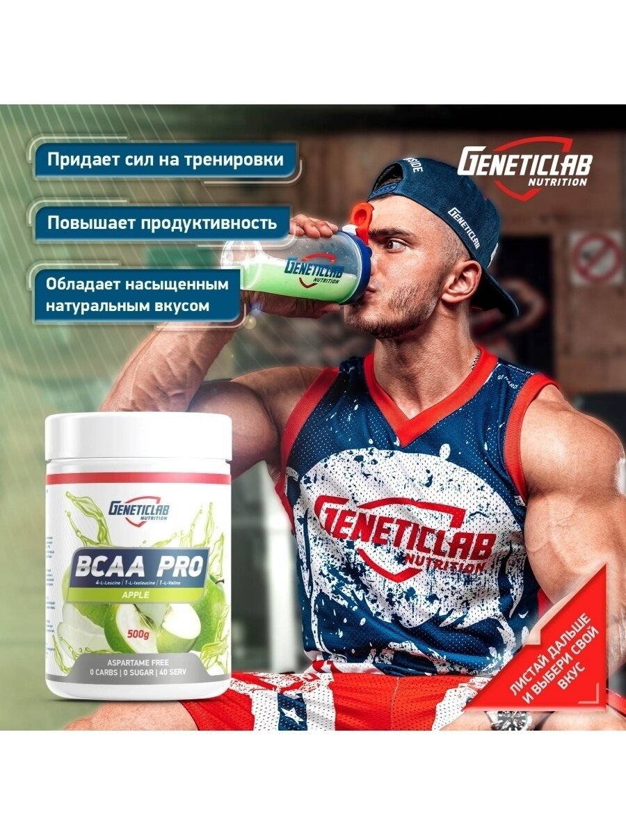 Аминокислоты BCAA 2:1:1 Geneticlab Nutrition 250 грамм яблоко, Основа твоей мускулатуры БЦАА Генетиклаб