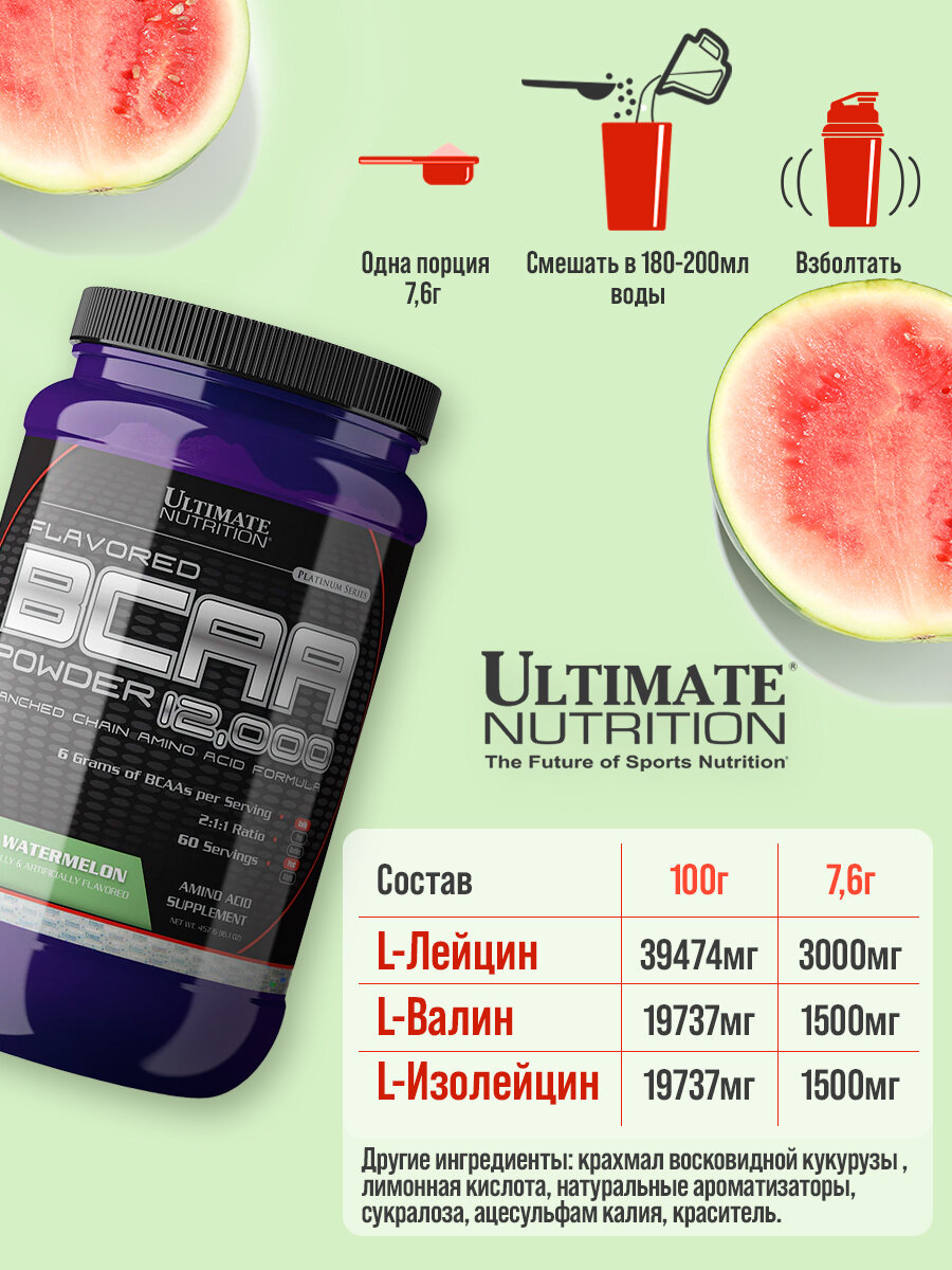 Бсаа Ultimate Nutrition Flavored BCAA 12000 Powder 2:1:1 457 г, Арбуз
