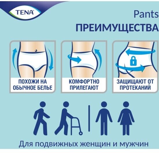 СохранитьТрусы впитывающие TENA Pants Normal, L, 100-135 см, 10 шт. интересное: