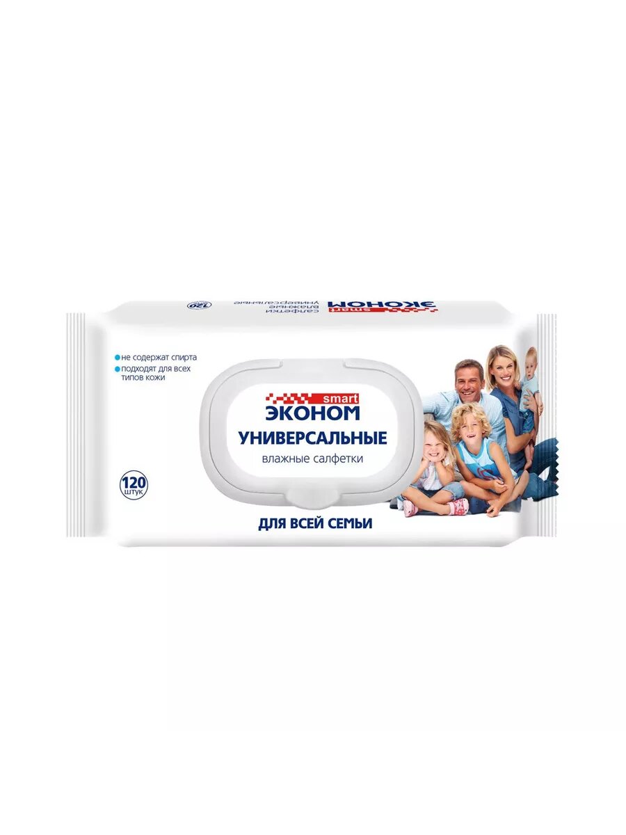 Купить Салфетки влажные 120шт/пачка эконом Smart Для всей семьи универсальные с крышкой