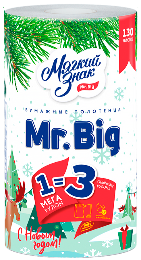 Полотенца бумажные Mr.Big Мягкий знак , 2слоя, 1 рулон, белые, 130 л, 1=3