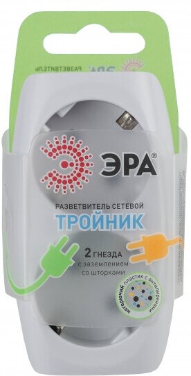 Тройник с заземлением и шторками SP-2e-W ЭРА белый, 2 гнезда ЭРА C0045528
