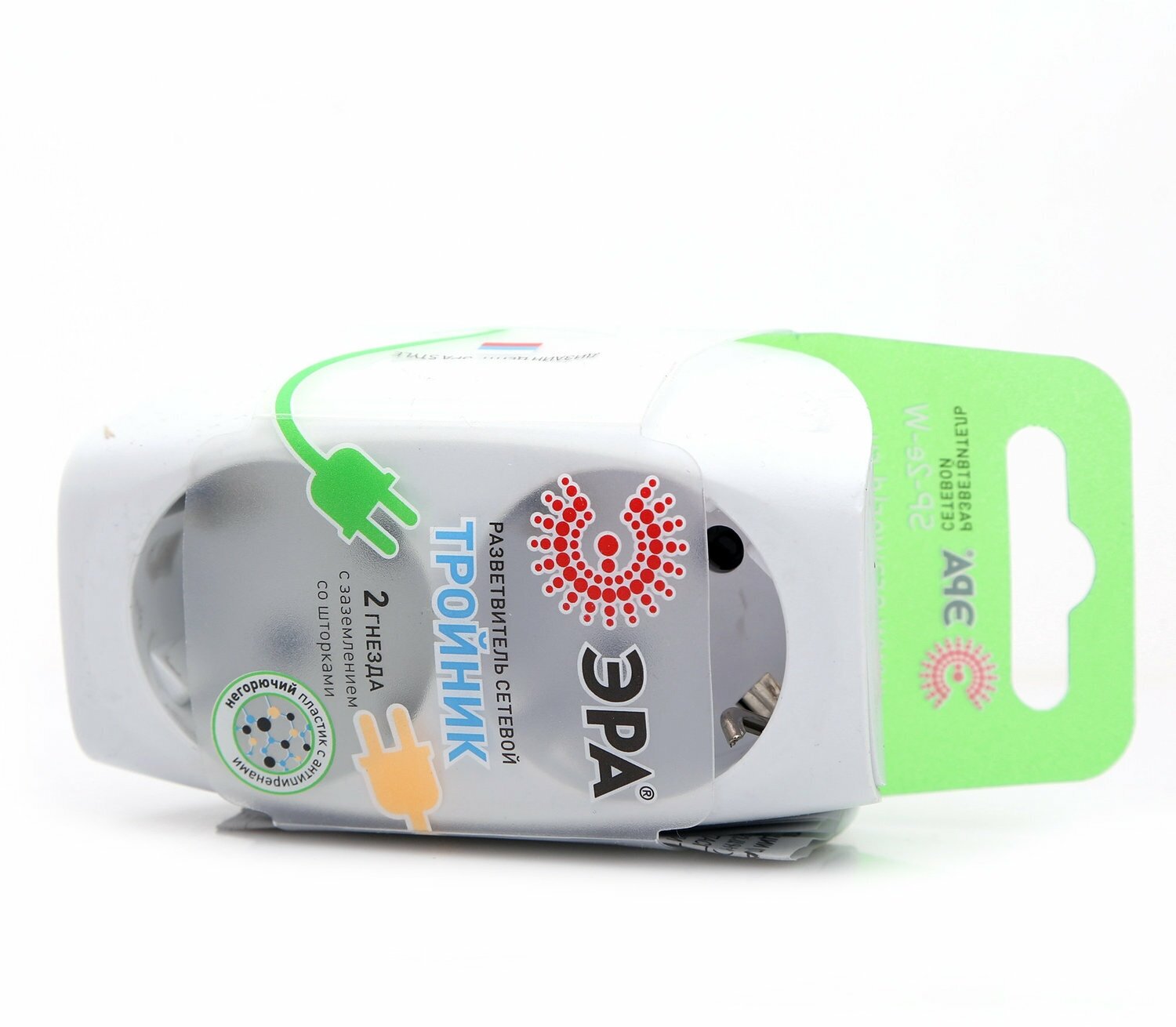 Сетевой тройник ЭРА, 2 розетки, с заземлением, со шторками, белый, SP-2e-W, 512051
