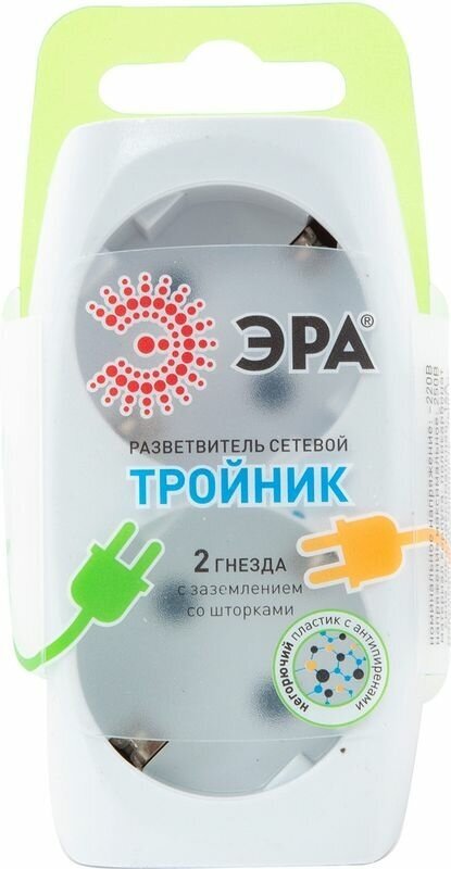 СохранитьТройник Эра "SP-2e", белый, 2 разъема, негорючий поликарбонат, защитные шторки от детей, заземление, максимальная нагрузка 3680 Вт., латунные контакты. интересное: