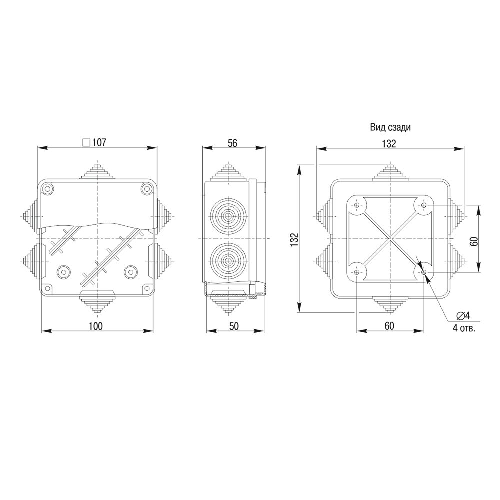 Распределительная коробка IEK КМ41219 / КМ41219-04 / КМ41219-05 наружный монтаж 100x100 мм