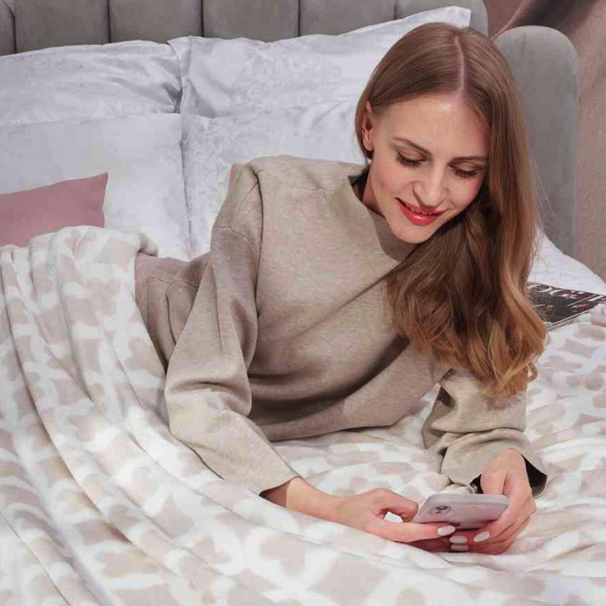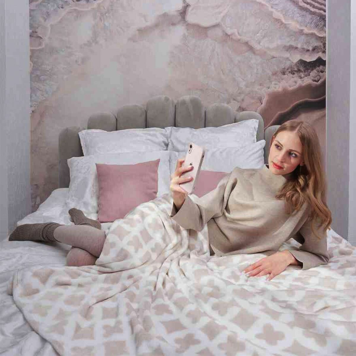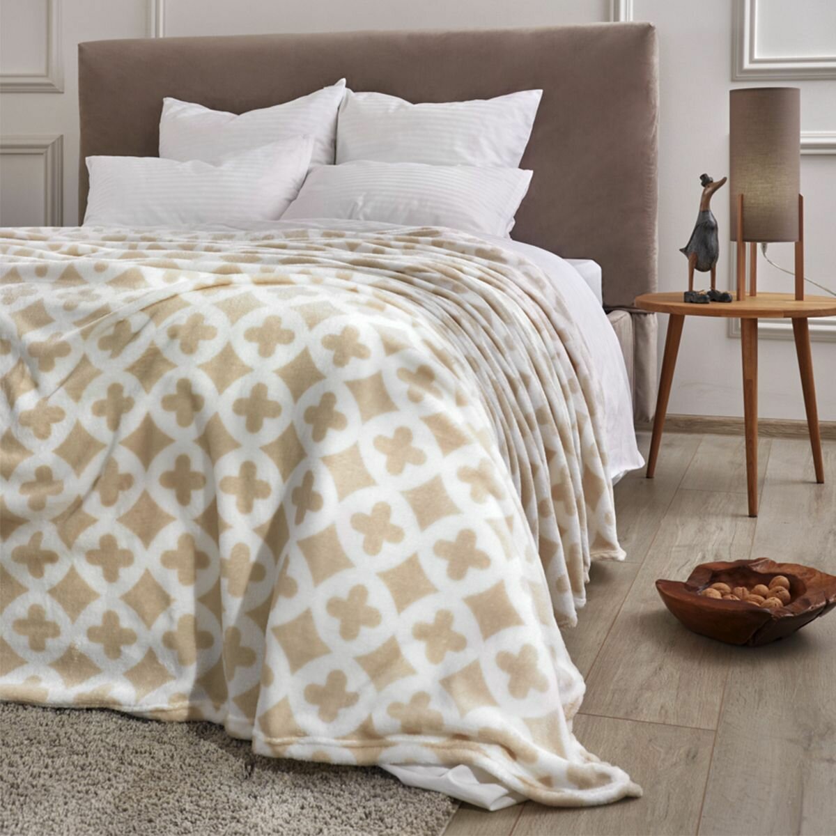 Велсофт ЗефирТекс Плед Monogram, орнамент, бежевый (180х200 см,)