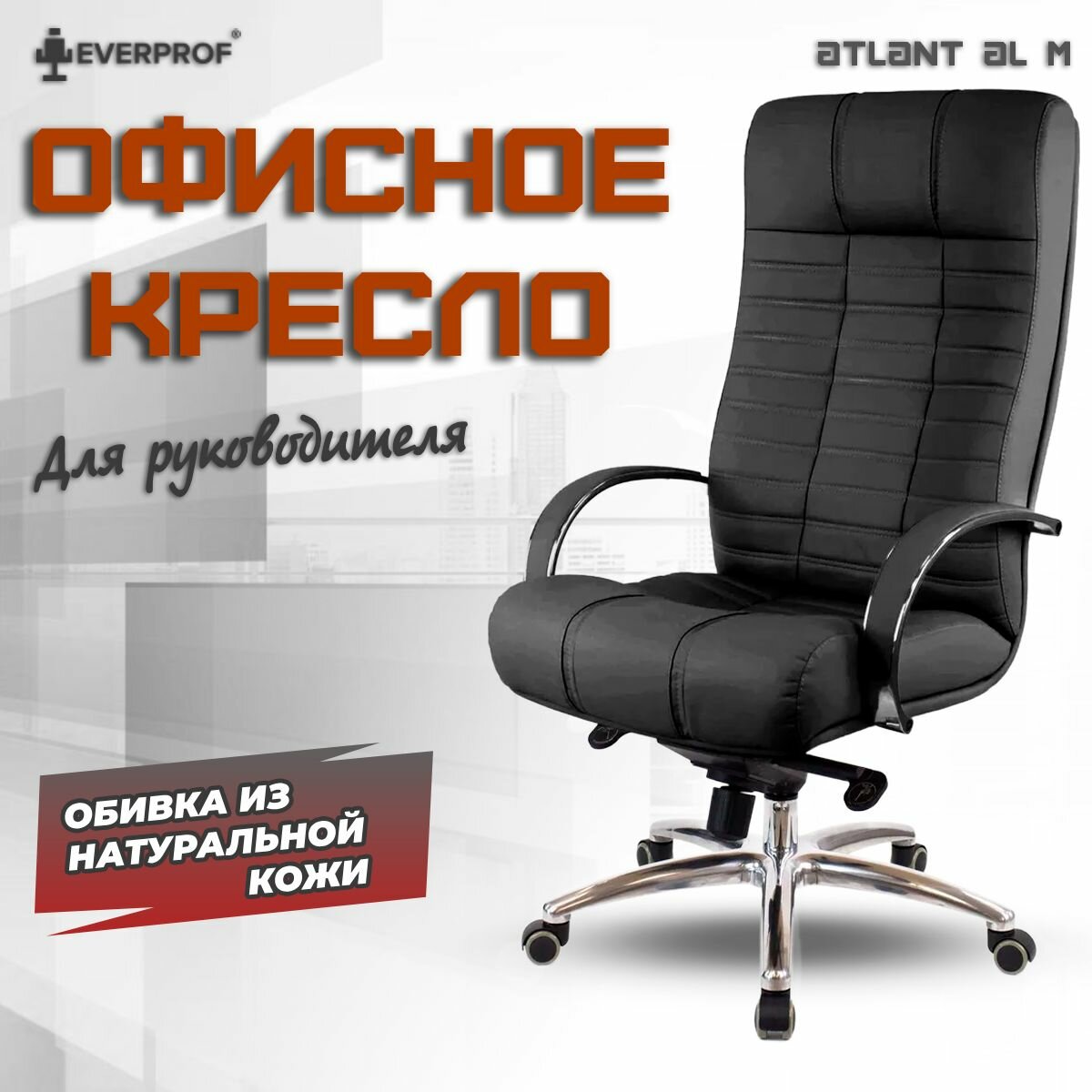 Эргономичное мягкое компьютерное кресло для офиса Everprof Atlant AL M, регулировка высоты газлифт, механизм качания мультиблок, обивка натуральная кожа чёрный