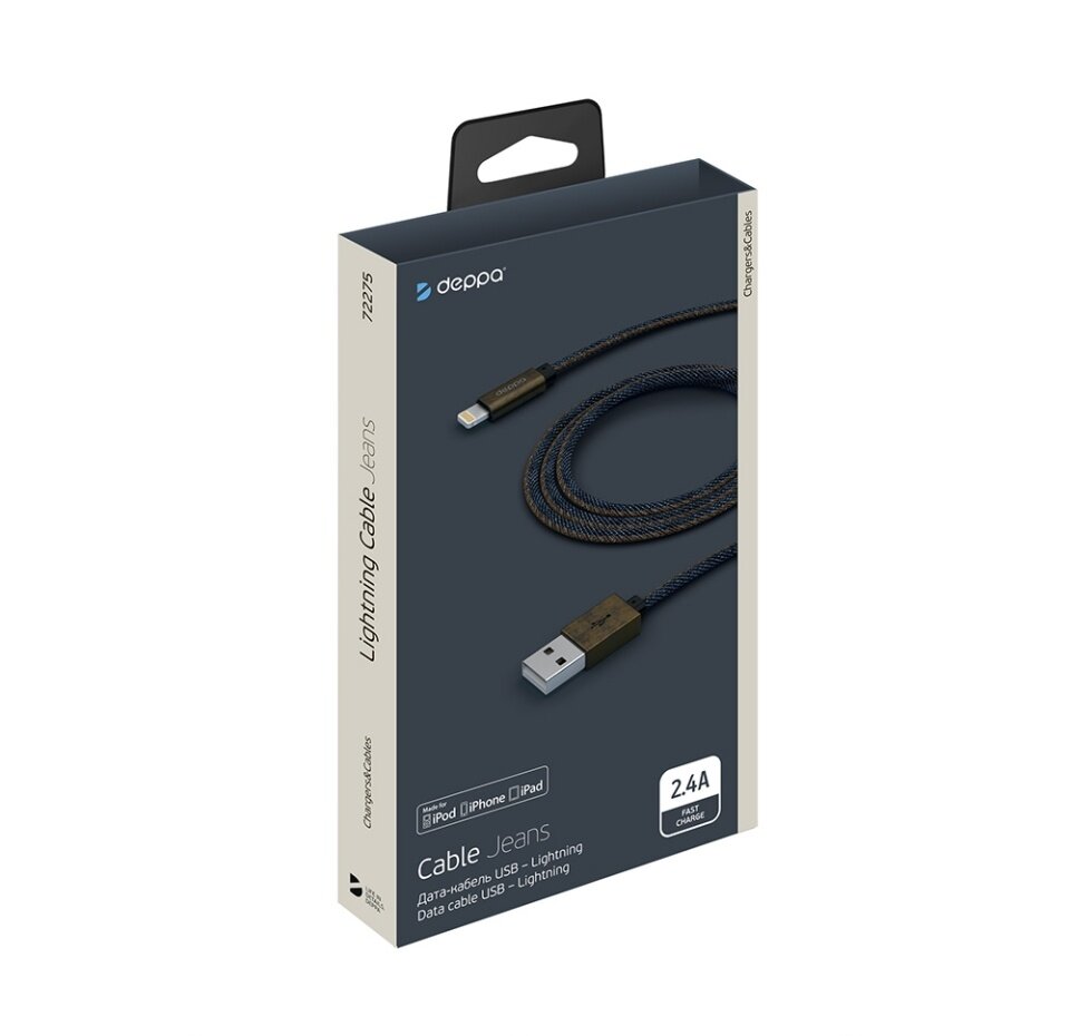 Кабель DEPPA Jeans, Lightning (m) - USB (m), 1.2м, синий