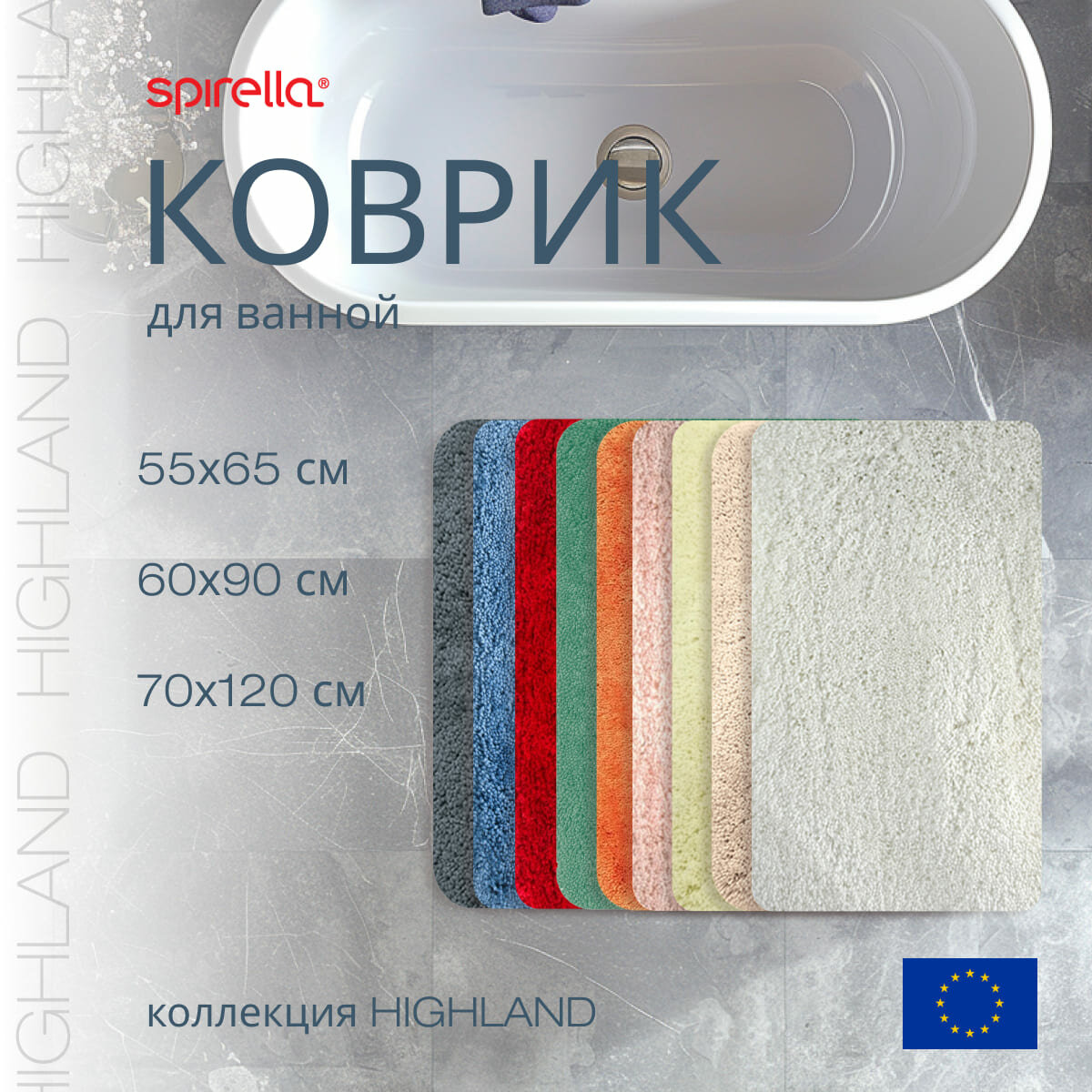 Коврик для ванной Spirella Highland, 60x90см, полиэстер/микрофибра, серый 1013085