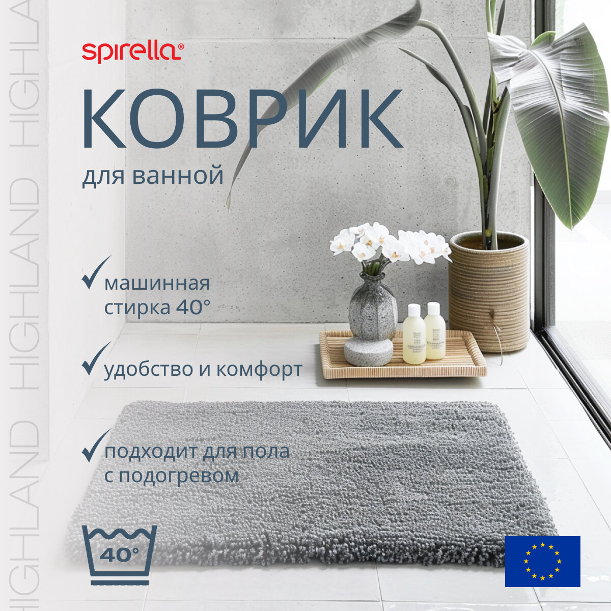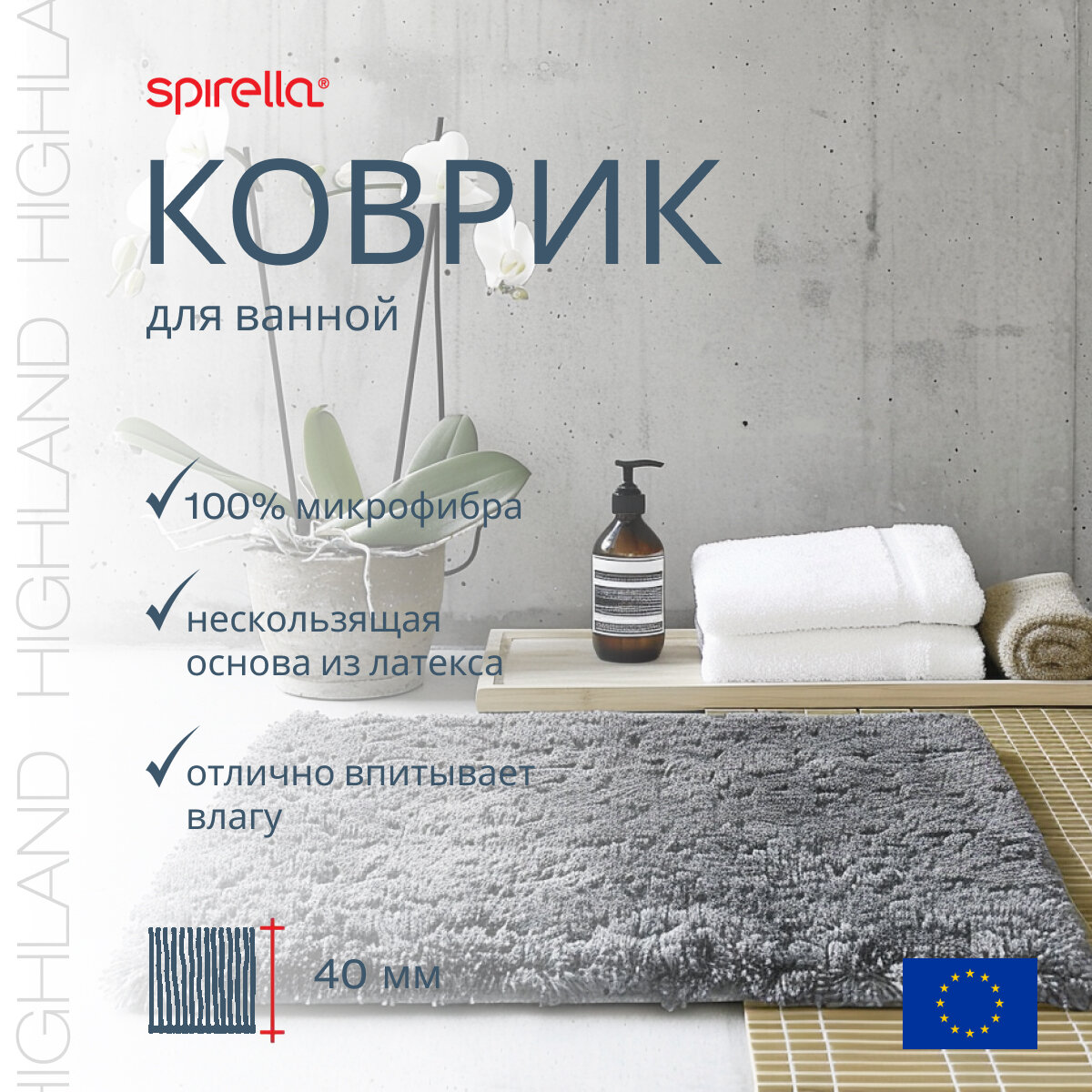Коврик для ванной Spirella Highland, 55x65см, полиэстер/микрофибра, серый 1013084