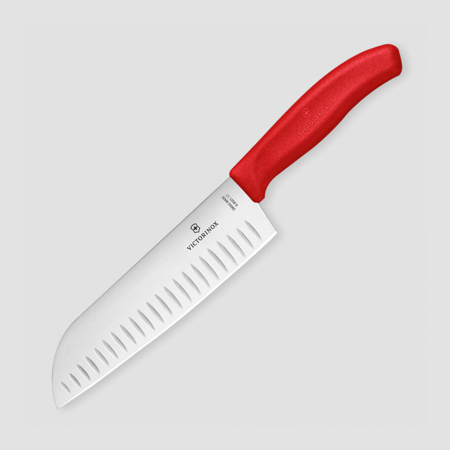 Нож Santoku VICTORINOX Swiss Classic, рифлёное лезвие 17 см, красный, в коробке 6.8521.17G