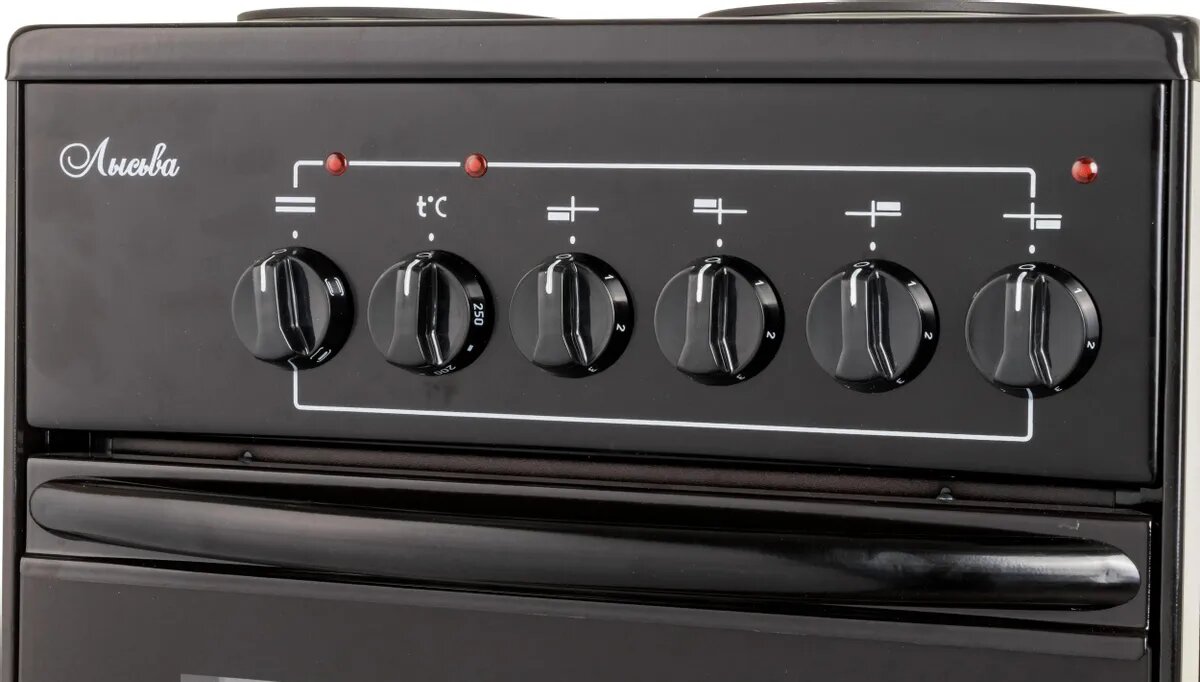 Плита Лысьва "ЭП 401 СТ", черная, 57л, таймер, термостат, ящик для посуды