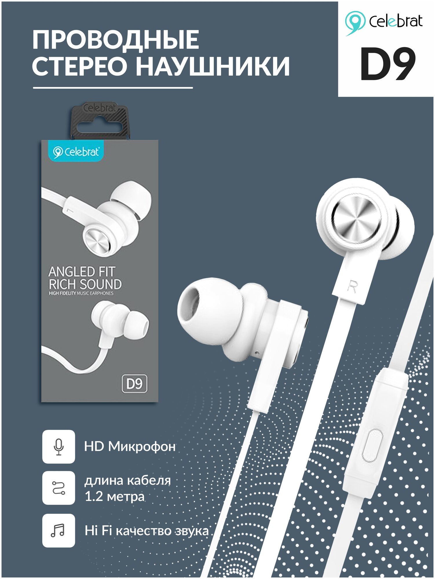НаушникивакуумныеAUXразъёмсМКбезрег.громкостидлина1.2мCelebratD9(S70)