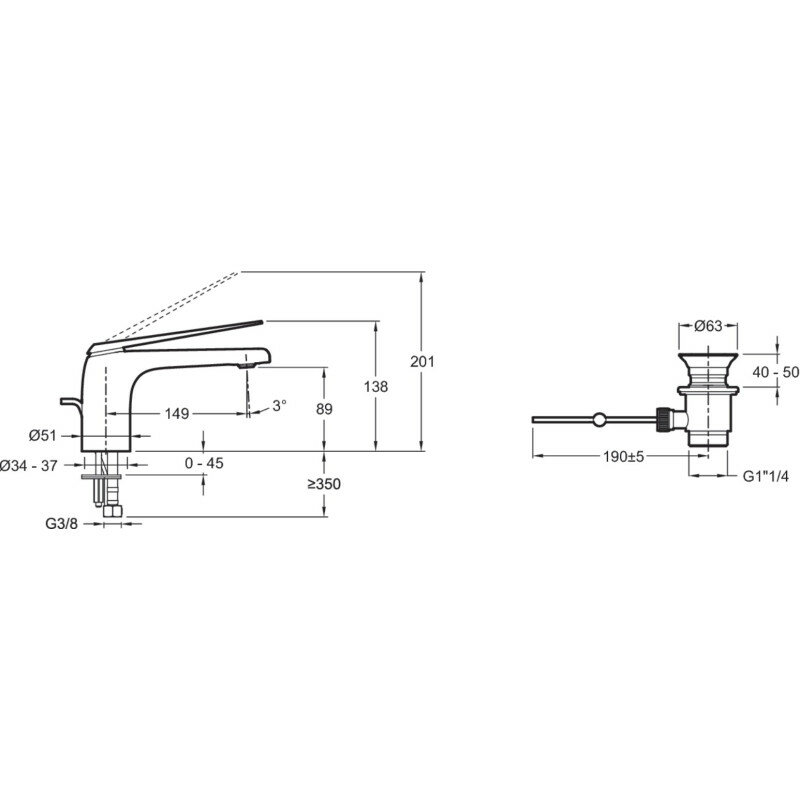 Смеситель Jacob Delafon Avid E97345-CP для раковины с донным клапаном