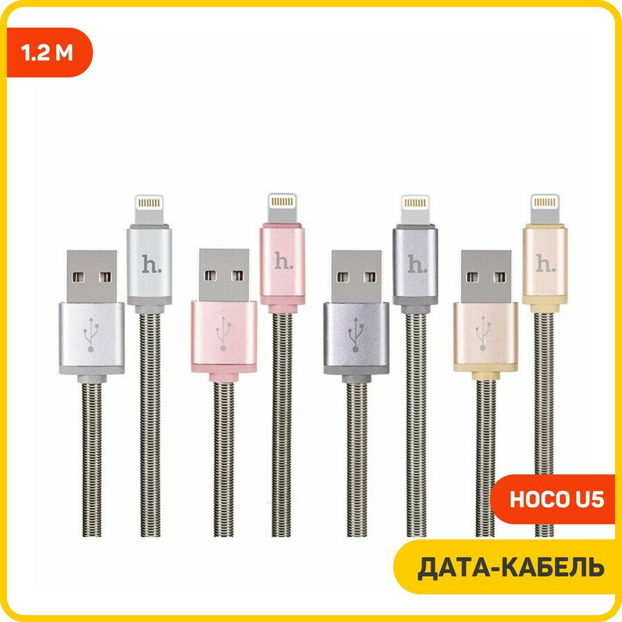 Дата-кабель Hoco U5 USB-Lightning, 1.2 м, серебро интересное: