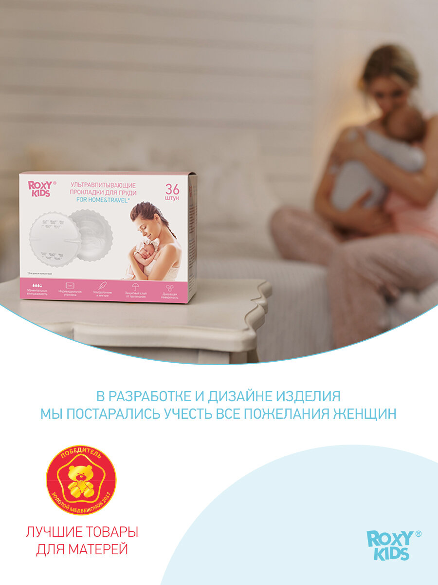 Roxy-kids Ультратонкие лактационные прокладки для груди HOME&TRAVEL, набор 36 шт.