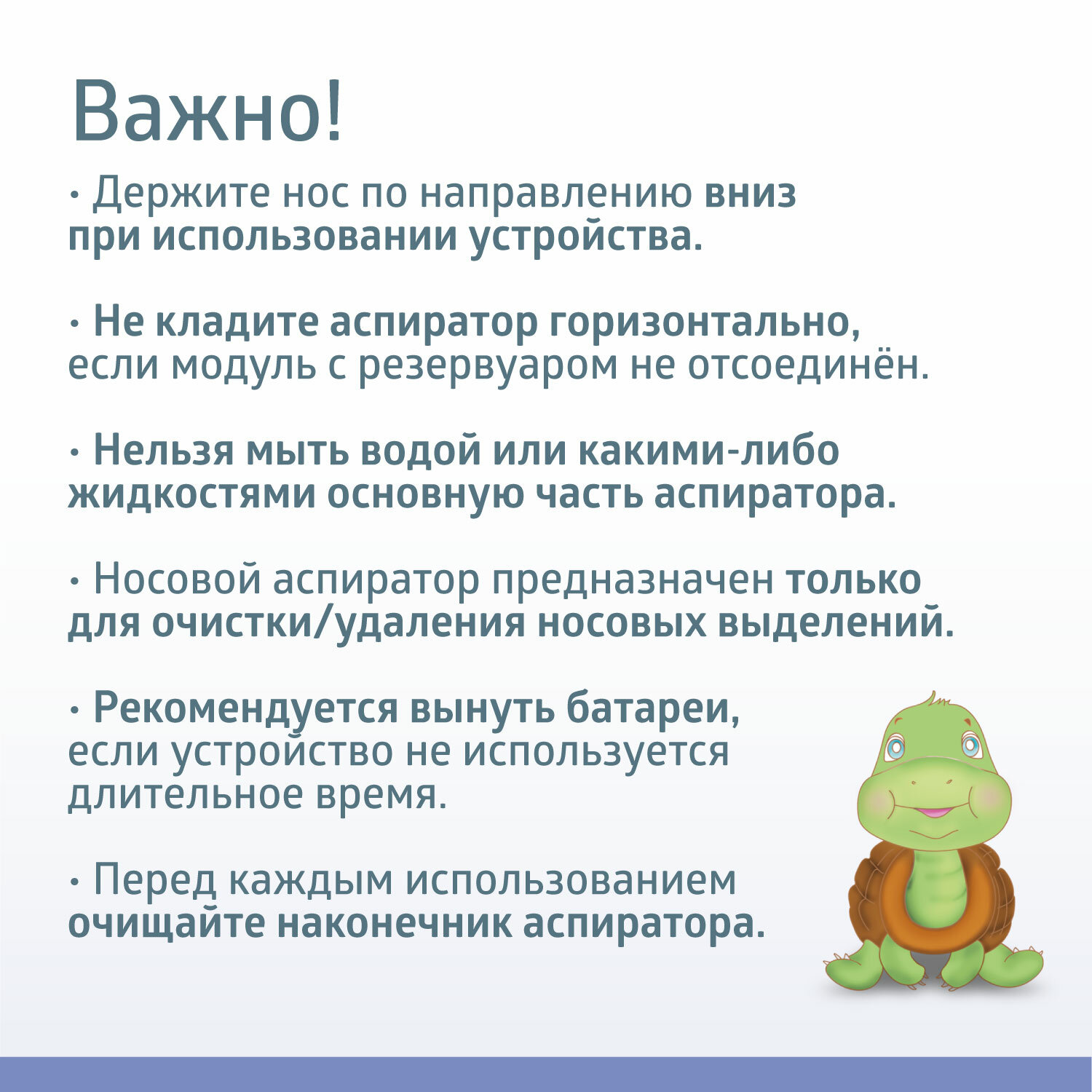 | Комплектация | аспиратор, наконечник – 2 шт., батарейки типа АА – 2 шт., сумка для хранения, инструкция по эксплуатации и гарантийный талон |