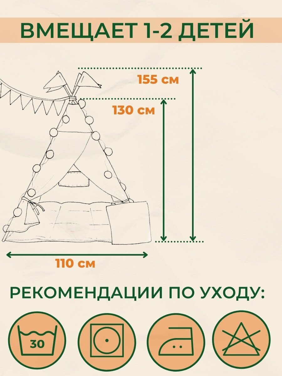 Вигвам 110x110 Cream с окном и карманом + флажки